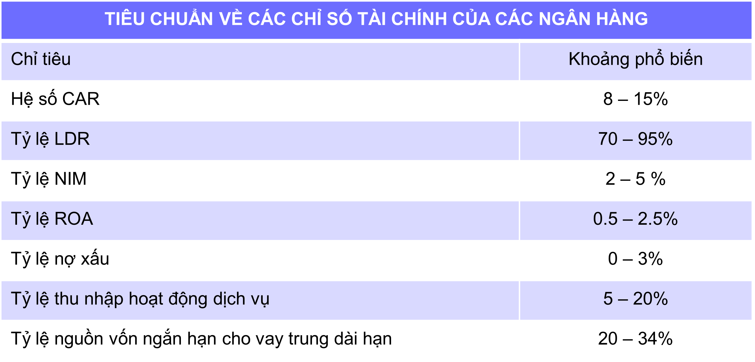 Bảng bên dưới sẽ thể hiện các chỉ số tài chính đặc thù của ngành ngân hàng: