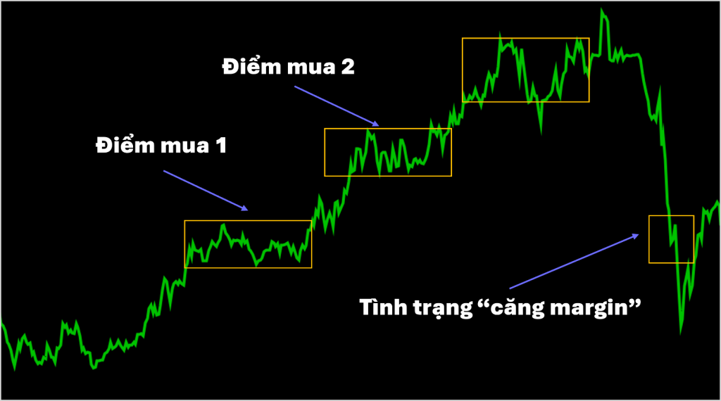 Khi cổ phiếu giảm mạnh, tuyệt đối không được tiếp tục mua vào bằng margin để bình quân giá xuống.